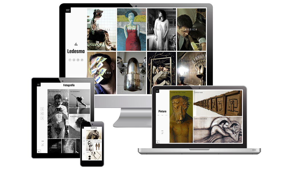 Página web realizada para el artista multidisciplinar Alvaro Ledesma,en la que recopila todo su trabajo en las disciplinas de: escultura, pintura, fotografía, música, literatura y videoarte.