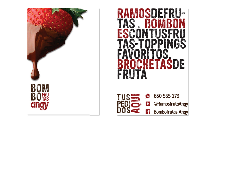 "Bombofrutas Angy", que reparte ramos de frutas bañadas en chocolate a domicilio.